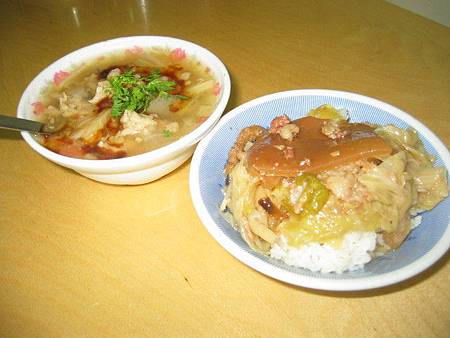 梳洗好,我們到北斗廟口吃阿美高麗菜飯、香菇肉羹,還不錯吃